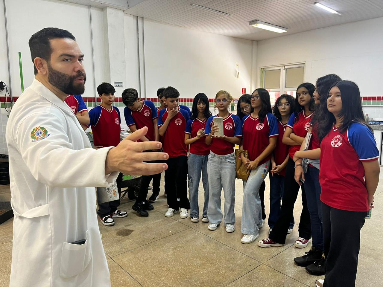 Estudantes do 9º ano do ensino fundamental da Escola Estadual Maria do Socorro Smith visitaram, na última sexta-feira (26/9), as instalações do Campus Macapá do Instituto Federal do Amapá (Ifap). A atividade teve como objetivo apresentar a estrutura dos laboratórios, da biblioteca, das salas de aula e dos demais espaços da instituição, proporcionando aos alunos visitantes uma experiência de aproximação com o ambiente escolar do Ifap.