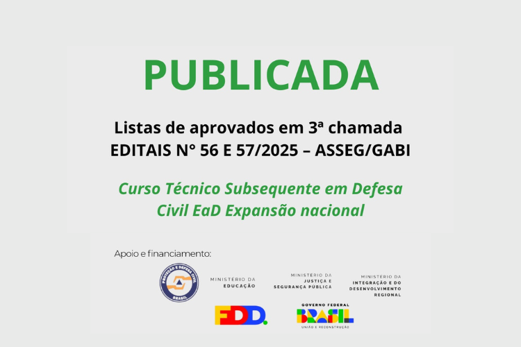 Foi publicada a terceira chamada para o Técnico Subsequente ao Ensino Médio em Defesa Civil (EaD). Os candidatos(as) aprovados(as) para o IFAP – Campus Macapá do Instituto Federal do Amapá (Ifap) devem enviar os documentos de matrícula no período de 17 a 21 de outubro de 2025. Confira a lista da terceira chamada: